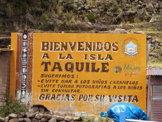 Um 7:30 Uhr geht es dann mit einem überdachten Boot los. Aufgrund des starken Regens erst zur drei Stunden entfernten Insel Taquile mit ihren ca 2000 Einwohnern. Dort ist das Wetter dann auch besser.