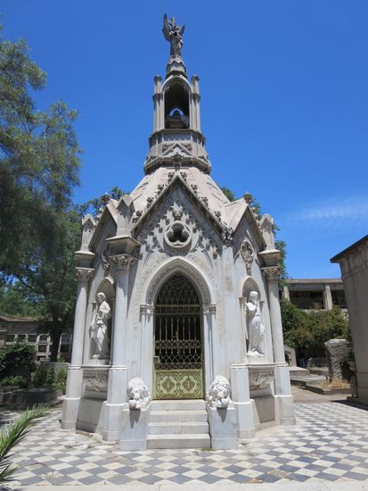 Nach einem leckeren Mittagessen auf dem Fischmarkt, laufen wir die "kurze" Strecke zum Zentralfriedhof und schauen uns die imposanten Gräber und Gruften an.