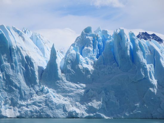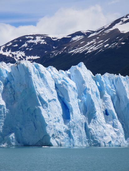 Natürlich machen wir auch die Bootstour mit und kommen so gan nah an den Gletscher heran. Der Moreno Gletscher ist der einzige auf der Welt, der noch weiter wächst und somit auch jeden Tag mehrmals krachend einiges Eis in den See vor uns abgibt. Das Boot dümplt eine Stunde lang vor der massiven Gletscherwand herum und wir erleben mehrmals das Donnergrollen und Krachen,mit dem riesige Teile des Gletschers in den See fallen. Unglaublich. Sicher eines der absoluten Highlights unserer Reise!