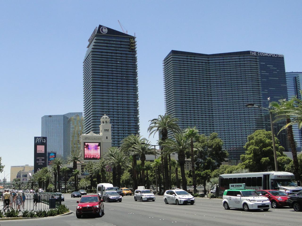 460km bis vegas! also los! vorbei an hunderten von windrädern und einem flugzeug friedhof gab es nach der hälfte der strecke einen unfall. ein lastwagen hatte gleich beide spuren blockiert und für zwei stunden ging gar nix. keinen meter! draussen waren schon über angenehme 40 grad. und die amis wären nicht amis, wenn nicht einige mit ihren pick-ups versucht hätten, durch die wüste ihren eigenen weg zu bahnen. mit mehr oder weniger erfolg. jedoch gab es auch diejenigen, welche auf dem pannenstreifen nach vorne fuhren, obwohl alle wussten, dass es keine ausfahrt weit und breit gab. also hatten einige leute ihre autos quer gestellt, dass uns niemand rechts überholen konnte. das endete mit bösem blut und angestrengten diskussionen. erst als eine frau ihre zwei kampf hunde aus dem auto holte, stiegen wieder alle in die autos und hatten sich lieb. als es dann wieder lief, gab mein navi den geist auf und ich durfte mein hostel erneut auf der karte suchen. hmpf! kurz vor las vegas passierte ich das grösste sonnenkraftwerk der welt, welches nun google gehört. drei riesen grosse spiegel türme reflektieren zusätzliches licht auf die panels. das ganze sah ziemlich science fiction mässig aus.