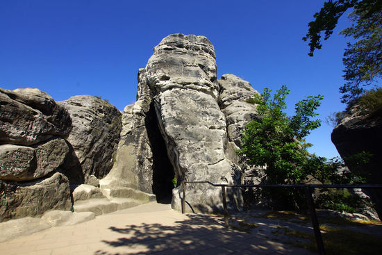Unser Nachtquartier hatten wir in Sebnitz. Dort gibt es nette, einfache Wohnmobilstellplätze neben dem Naturbad. Der braungebrannte Bademeister ist auch gerne bereit, einem Tipps für diverse Erkundungen zu geben. Am nächsten Tag war unser erstes Ziel die Bastei mit der berühmten Basteibrücke, die fast von jeder Postkarte lacht. Die Bastei war eine Verbindung zu der Felsenburg Neurathen. Von dem höchsten Aussichtspunkt geht es 194 Meter senkrecht bis zur Elbe runter. Die EUR 2,00 Eintritt sind es allemal wert. Zwischen den Felsformationen wurden Brücken und Treppen errichtet, wodurch man einen tollen Ein- und Ausblick über die Felsformationen bekommt. Ganz wagemutige können auch auf viele der Wände raufklettern.
