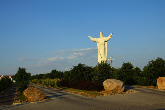 Noch am selben Tag haben wir polnischen Boden betreten. Unser Ziel an diesem Tag war … ehrlich gesagt hatten wir kein Ziel. Wir wollten einfach mal die Gegend erkunden und uns nach einem lauschigen Übernachtungsplatz umsehen. Irgendwie haben wir gemerkt, dass uns Polen dann doch noch nicht ganz geheuer war .Aber wir haben uns schlussendlich dann doch getraut. Im Schutz von der Christus-König-Statue haben wir einen ruhigen Stellplatz gefunden und dort die Nacht verbracht. Diese Statue ist sogar um 6 Meter höher als die weltberühmte in Rio – sehr beeindruckend!