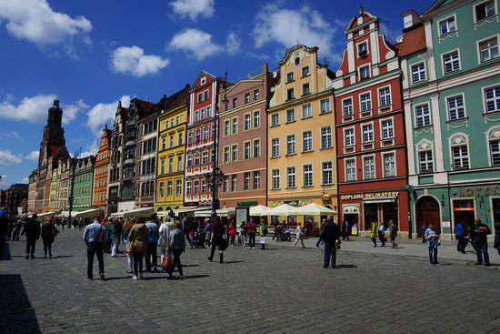 In Breslau haben wir uns auf einem netten kleinen Campingplatz mit guter Öffisanbindung einquartiert. Der erste Eindruck beim Verlassen der Tram war gut, und im Laufe des Tages wurde dieser bestätigt nein sogar besser. Nach Danzig hat uns diese polnische Stadt am besten gefallen. Man muss auch dazu sagen, dass an diesem Tag einfach wieder alles gestimmt hat – angefangen vom stimmungsvollen Wetter bis hin zum tollen Essen. Im Zentrum der Stadt hat man gar nicht den Eindruck, dass diese Stadt 630.000 Einwohner hat. Wie in jeder anderen polnischen Stadt findet man im Zentrum jede Menge Restaurants und Cafés. Die üblichen Shops (Benetton & Co.) findet man in so gut wie in keiner Stadt. Sollte man einmal doch Lust zum Einkaufen haben, finden sich des öfteren größere und kleiner Shoppingcenter etwas außerhalb.
