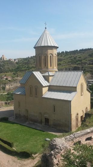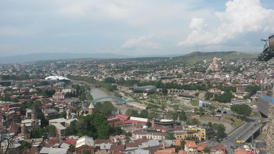 Im LP war ein sog. Walk vorgeschlagen, der einen in gemütlichen zweieinhalb Stunden an den wichtigsten Sehenswürdigkeiten vorbeiführen sollte. Dem Walk folgend, haben wir uns mithin zunächst mit Seilbahn zur Festung begeben, sind dort ein bisschen rumgekraxelt und haben Mutter Georgien (neben Kiew und Tiflis gibt es eine solche "Mutter" auch in Jerewan - nicht aber in Baku) angesehen. Dann ging es noch was durch die Altstadt und auf den Rustaweliprospekt, auch hier war ein Nationalfeiertag im Anzug mit entsprechenden Aktivitäten auf der Straße (vom Nationaldichter Rustaweli kann man i.Ü. ruhig schon mal gehört haben).