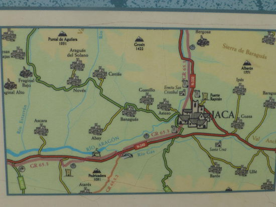 Ab Pamplona geht es immer Richtung Osten. Die Autobahnabschnitte sind nagelneu und es herrscht so gut wie kein Verkehr. Dazwischen müssen wir immer wieder auf die Nationalstraße wechseln, die entlang des Yesa-Stausees auch etwas abenteuerlich ist. Kurvig und eng geht es hier zu.