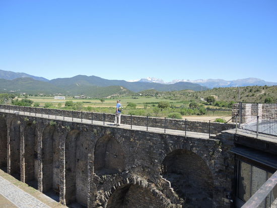 Während die "Unterstadt" eher mäßig interessant, laut und verkehrsdurchflutet ist, liegt das eigentliche Herzstück auf einem Hügel. Wir bummeln durch die malerische Altstadt mit ihren engen Gassen, genießen die Aussicht auf Pyrenäengipfel und den Mediano-Stausee, trinken Kaffee auf der mit Arkaden umsäumten Plaza Mayor. Einfach nur schön hier