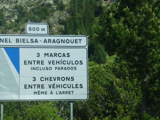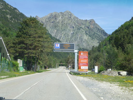 Die Strecke bis Bielsa kennen wir ja schon, aber danach müssen wir uns über 10% Steigung auf 1.700 Meter hinauf schrauben. Unser Diesel kommt ganz schön ins Schnaufen. Auch im drei Kilometer langen Tunnel, der Spanien mit Frankreich verbindet, geht es zunächst noch bergauf, so dass wir auf 1.850 Metern in Frankreich ankommen. Ein beeindruckendes Panorama erwartet uns hier.