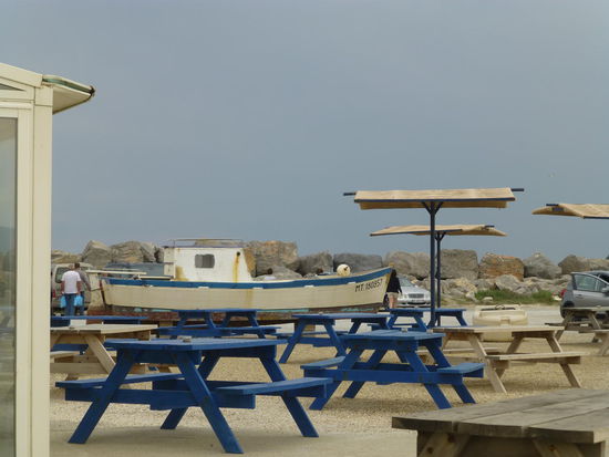 Wir gehen auf den Markt, unternehmen lange Strandspaziergänge und genießen die Faulenzertage mit Lesen im Liegestuhl. Bei einem unserer Strandspaziergänge entdecke ich auf dem benachbarten Campingplatz eine Internet-Bekanntschaft. Iris H. - die mich auf dieses Reiseforum gebracht hat. Hallo Iris, es ist schon erstaunlich, wie klein manchmal auch die virtuelle Welt ist. Ich hoffe, ihr hattet noch schöne Tage in Gruissan