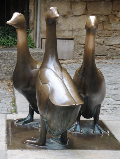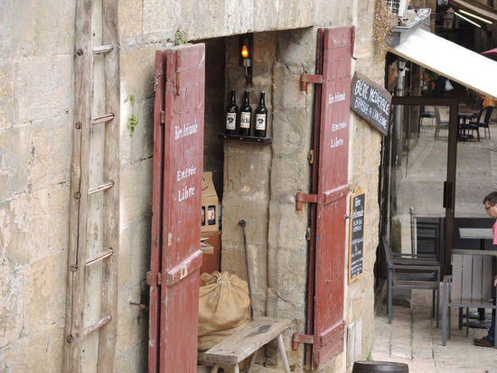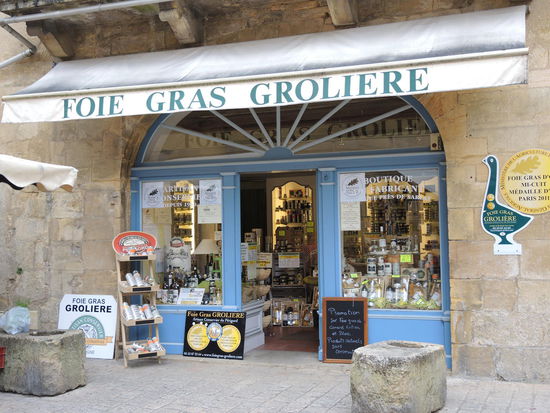 Schließlich erreichen wir das eigentliche Herzstück der Stadt, wo auch der Lebensmittelmarkt stattfindet. Und da sind wir begeistert von dem lukullischen Angebot. Wir lassen uns aufklären über Nussöl und Foie Gras, erstehen Honig, naschen Käse und kehren schließlich zum Mittagessen ein. Das Tagesmenü gibt es für 12,50 Euro mit Salat und Foie Gras, Entenkeule und Bratkartoffeln sowie einem Nusskuchen als Dessert. Mit Kaffee, Wasser und einem 1/2 Liter Rosé bezahlen wir zusammen 39 Euro und sind pappsatt nach diesem opulenten Mahl.