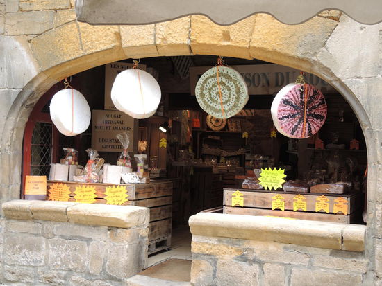 Jetzt ist zwar Frühsommer, aber wir machen uns trotzdem auf den Weg. Ein Parkplatz etwas außerhalb der mittelalterlichen Stadt ist gefunden und anfänglich sind wir zunächst enttäuscht. Das übliche Angebot der französischen Krämermärkte mit Kleidung, Gruschd und Krempl und ein bisschen Kunsthandwerk, das sich bei genauerem Hinschauen als Ware aus Fernost entpuppt. Wir lassen uns trotzdem treiben, biegen ab in die mittelalterlichen Gassen, erstehen für unseren Vierbeiner ein neues Lederhalsband und für mich ein schönes Seidentuch.