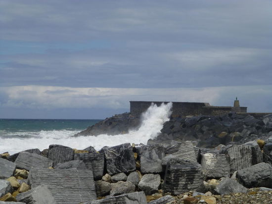 Der Campingplatz liegt auf einer Klippe über der Bucht von Zarautz. Wir hören den Atlantik unter uns rauschen. Dazu ein toller Blick über die Bucht und der Jakobsweg führt ebenfalls vorbei. Es wäre also alles toll, wenn da nicht das Wetter wäre...... Kalt (12°) und immer wieder Regenschauer. Atlantik eben