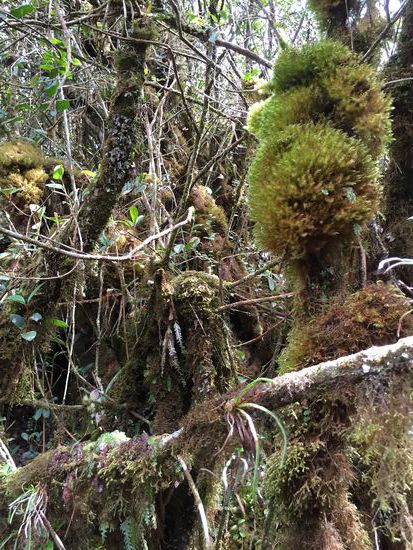 Unser Guide nahm sich viel Zeit, um uns über die Wichtigkeit und das Funktionieren des Ökosystems bzw. auch und besonders des Mooses zu informieren. Und warum die Highlands gerade so im Umbruch seien. Dass man mittlerweile im Großteil der über 100 Flüsse, die sich hier speisten und in denen er als Kind geplanscht habe, mittlerweile viele Chemikalien finde und eine Touristin die sich mal in einem der klaren Flüsse die Hände gewaschen habe, in Kl ihren Ausschlag hat untersuchen lassen der darauf zurückgeführt wurde. Dass viele Tier- und Pflanzenarten aussterben. Dass sich das Wetter ändert. Dass die Regierung zwar keine weitere Rodung zugunsten von Farmland wolle Dies jedoch nicht reglementiert und durchsetzt.