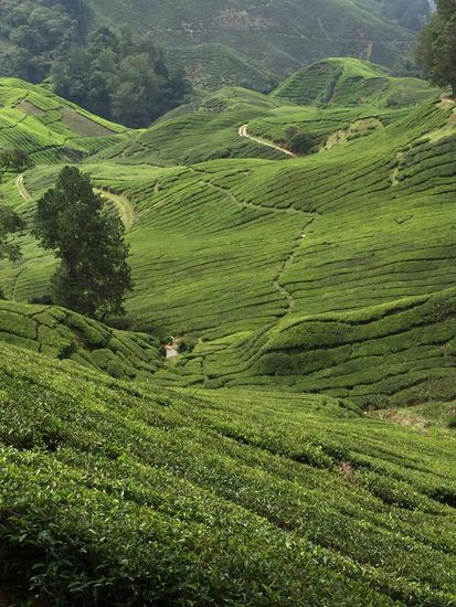 Erst einmal gibt es also eine halbwegs abenteuerlustige Strecke hoch zum Gipfel, dem Gunung Brinchang auf 2000 Höhenmetern. Eine enge gewundene Straße an der an jeder Straßenecke gehupt wird, um Gegenverkehr zu sensibilisieren, Schlaglöcher und traumhafte Ausblicke auf Teeplantagen säumten den Weg.