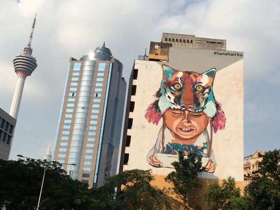 Wir hatten danach noch ausreichend Zeit, um gemütlich einfach drauflos Richtung Petronas Towers zu wandern. Mit vier Augen sieht man mehr und siehe da-Streetart gibt es auch in KL.