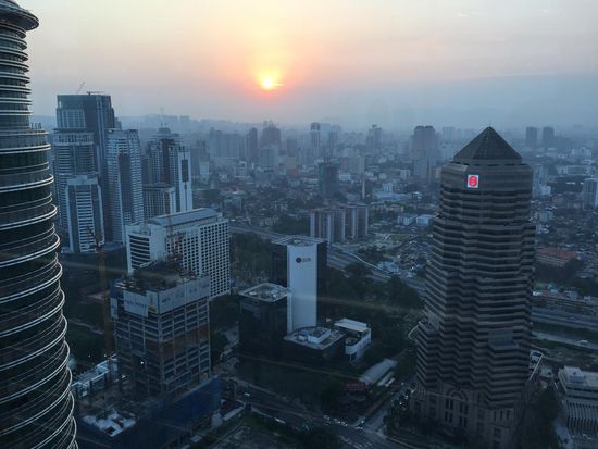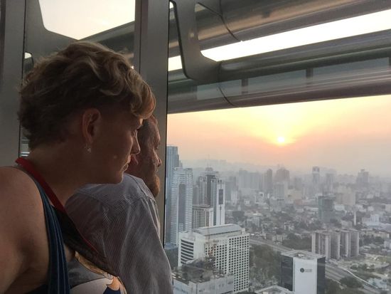 Evtl erwähnte ich, dass die Türme mich akut an den Burj Khalifa in Dubai erinnern. Das ganze Prozedere ebenso, aber es ist dennoch ein besonderes Erlebnis und die Skyline natürlich völlig andersartig als Dubai. Wir waren begeistert! Danke an Franzi und Lars aus den Highlands für den Tipp, die Tickets für 19 Uhr zu lösen, so, dass wir im Hellen und zum Sonnenuntergang oben waren. Es war zwar diesig, hat dem Ausblick aber keinen Abbruch getan.