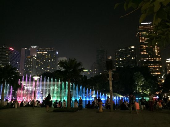 Danach and wir zu Füßen der Towers draußen noch etwas Zeit vertrieben und die schöne Fontänen-Lichtshow (bei der ich jetzt nicht betone, woran sie erinnert) angeschaut. Ein tolles Szenario. Und der harmonisch-friedliche Ort, die Menschen, die völlig entspannt in der warmen Abendluft saßen, rundeten den Abend ab und wir hätten gerne noch die ein oder andere weitere Stunde hier gesessen und einfach alles wirken lassen.