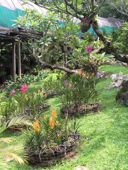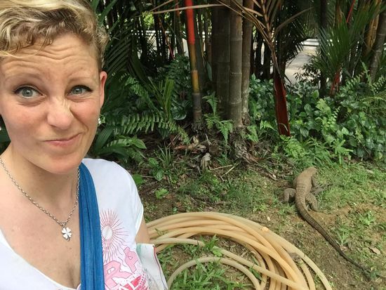 Ach ja... Ich war ja auf dem Weg zum botanischen Garten. Gar nicht so einfach, bei der Hitze. Musste einige Stopps einlegen. Denn, was auf der Karte nach einem kurzen Weg aussieht, erweist sich als kilometerlanger Fußmarsch. Kein direkter Weg von a nach b. Nein, da muss man zB um eine Fluss zu überqueren durch ein Gewirr überdachter Gänge, die in einem alten Bahnhof münden. Wo man ja auch nicht einfach über die Gleise springen kann. Und wo man auch nicht überall rein und rausspazieren kann. Einen weiteren Stopp habe ich an einer hochmodernen Moschee eingelegt. Da wusste ich zum Glück noch nicht, dass mir der weitere Fußweg bergauf bevorstand. Im Orchideengarten angekommen, habe ich mich von den Orchideen und dem gigantischen Ausblick über die Stadt entschädigen lassen. Vorher kreuzte der erste ( von vielen, die noch folgen sollten) Waranen meinen Weg.