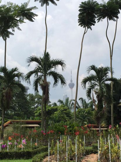 Eine weitere Pause (und literweise Wasser) ging es auf der anderen Seite hinab zum botanischen Garten. Eine hübsch angelegte riesige Grünanlage hinter den Wolkenkratzern von Kl. Neben zwei handvoll Arbeitern die pflanzten, pflückten, harkten, war ich eine von ganz wenigen Besuchern und hatte den Park fast Für mich. Das habe ich für ein schattiges Mittagsschläfchen genutzt