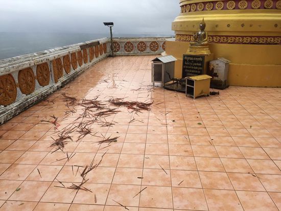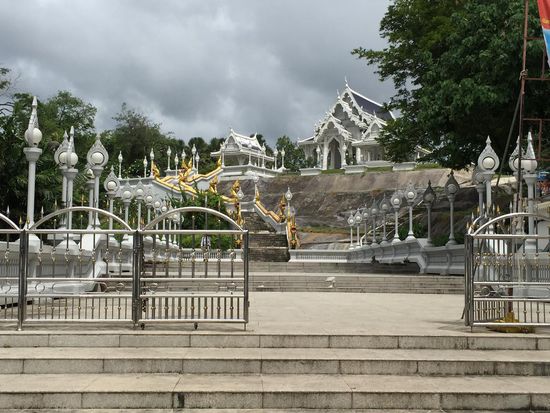 Vereinzelt waren Buddhisten unterwegs. Touris waren noch nicht viele hier. Um denen und der Mittagshitze aus dem Weg zu gehen bin ich recht früh angereist, denn zum Tempel oben auf dem Berg musste ich über 1200 Stufen erklimmen. Kleinigkeit