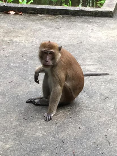 Interessanterweise haben die Affen Mich völlig desinteressiert passieren lassen ( die Plastiktüte befand sich wohlwissend in meiner Handtasche). Ich bin also weitergegangen. So eine Heldin bin ich nun nicht, dass ich erwachsenen Männern Geleitschutz an Affen vorbei biete...