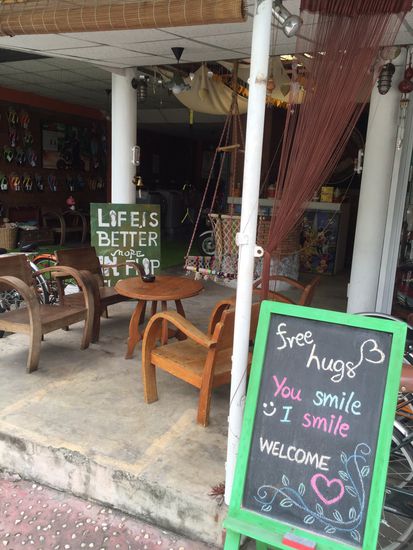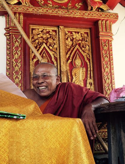 Danach hatte ich eigentlich keine Tempel mehr im Sinn und habe mich treiben lassen. Und wie das ja dann immer ist, wenn man es am wenigstens erwartet. Ich bin in eine Nebenstraße gegangen die irgendwie nett aussah und die - natürlich- in einen Tempel mündete. Jedoch in einen so kleinen und unscheinbaren dass er nicht einmal auf der Karte verzeichnet war. Ich machte ein paar Fotos als mich aus dem Tempel ein Mönch ansprach und sagte ich solle Zu ihm kommen. Selbstverständlich. Er hat mich ein wenig ausgefragt und dann lange von sich erzählt und von Religionen. Dass man ja an etwas glauben soll. Und mir gesagt was für ein Mantra ich mir jeden Abend zum einschlafen vorsagen soll. Von dem was er wohl als Englisch bezeichnen würde, habe ich maximal 30% verstanden. Aber es war einfach herrlich ihm zuzuhören. Zwischendurch kicherte dieser alte, von Falten gezeichnete, ernste Mann so vor sich hin, als säße ein kleiner Junge vor mir. Es war herrlich ! Scheinbar unterhält er sich sehr gern mit touris denn er zeigte mir dann ein Gästebuch .. Seine Lieblingseinträge zierten alle einen Smileys. "Comic hihi" nannte er das. Die schien er zu mögen. Also habe ich mich natürlich auch ganz kreativ verewigt. Ein absolutes Highlight. Nach Ca. 45 Minuten machte ich mich auf den weiteren Weg aber eins war klar: he made my day! Und als Dankeschön bekam ich (!!!) einige Minibananen.