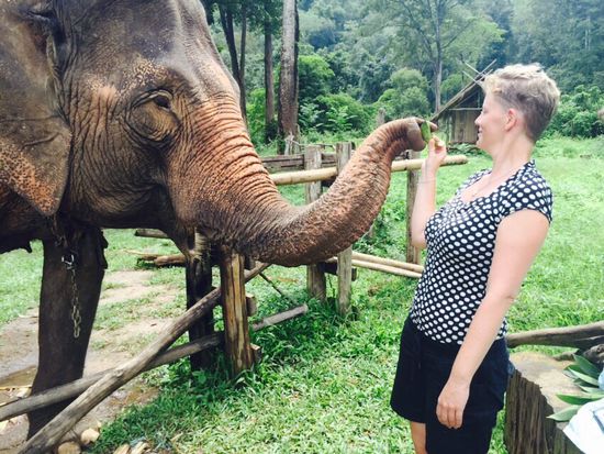 Ali und ich hatten uns gegen den Elefantenritt ausgesprochen denn man hörte einfach zu viele Horrorstories über die nicht artgerechte Haltung und die Erziehungsmethoden die angewandt wurden um Elefanten für Touristen gefügig zu machen. Das wollten wir nicht unterstützen sondern nachdem die Jungs mit den Elefanten zum Baden geritten waren, die Fütterung übernehmen.