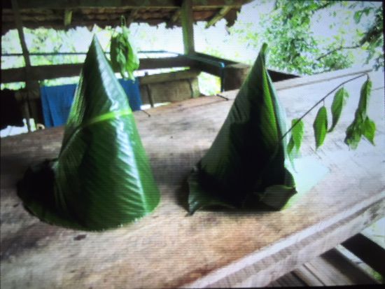 Goo hatte auch für dieses Problem eine vorübergehende Lösung und bastelte uns aus dem was der Regenwald hergab chice Robin-Hood-Hüte.