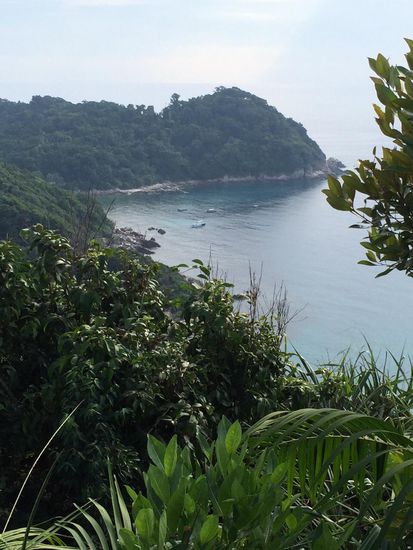 Um 15 Uhr lief ich das letzte Mal den Berg hoch, packte die Sachen ein, die noch auf der Leine getrocknet waren und schleppte meinen Trolley den Berg runter. Erfreulicherweise ging es nicht zum Anlegesteg, sondern gleich ab der Strandmitte los. Also keine Notwendigkeit meinen Backpack zu reaktivieren. Entsetzen packte mich als ich in ein kleines Boot ohne Dach gebeten wurde. Große Augen. Wenn ich damit die ganze Strecke übersetzte, hätte ich bei Ankunft schwerste Verbrennungen. Zum Glück schipperte man mich und meine Tasche und meine Tüte aber nur 20 Meter ins Meer wo ich auf offener See in ein anderes Boot - mit Dach! - umgestiegen bin. In Kuala Besut war ich schnell, holte mein Busticket ab und wartete. Denn mein Bus nach Penang würde erst um 20 Uhr losfahren. Ich war mit guter Lektüre ausgestattet und so verging die Zeit recht fix, bis der Bus ankam. Der Bus übertraf alle meine Erwartungen an einen Nachtbus: es gab kostenfreies funktionierendes WLAN, Liegesitze fast wie in der First class und Platz ohne Ende. An irgendeinem Stopp wurde ich unsanft darauf hingewiesen dass ich den Bus wechseln sollte. Na... Wenn die meinen.