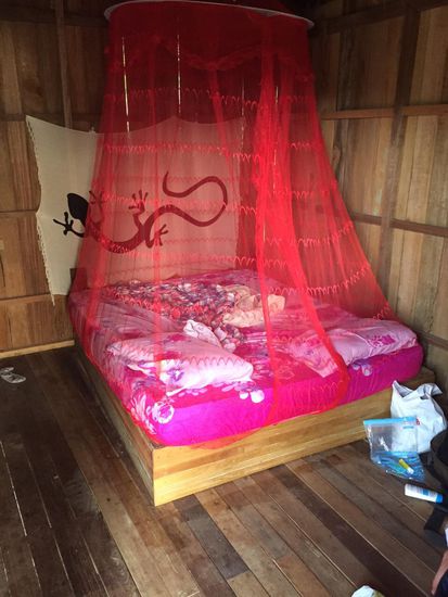 Am nächsten Tag sollten wir außerdem bemerken, dass es große Löcher im Moskitonetz gab, die Mücken also freien Flug hatten...
