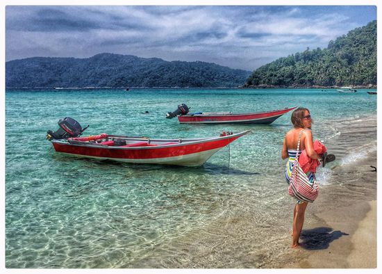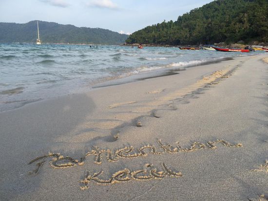 Türkises Meer! So Türkis wie ich es lange nicht gesehen habe. Es gibt frische Fruchtsäfte für keine 2€, niedrige Sonnenschirme die den Strand säumen, Hippies die selbstgemachten Schmuck verkaufen. Man kann sich Schnorchel ausleihen. Malayische Babys schlafen in Hängematten. Chinesische Kinder graben ihren Vater im Sand ein. Hier ist es so wie ich es mir auf Bali immer vorgestellt habe. Hinzu kommt ein Kulturenmix, der friedlicher nicht sein könnte. Verschleierte Muslime sitzen mit ihren Badeburkas im Wasser und grooven auf die westliche Musik, die ab nachmittags aus einem Lautsprecher trällert.