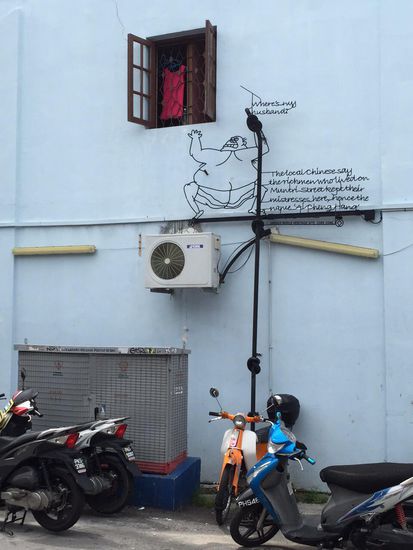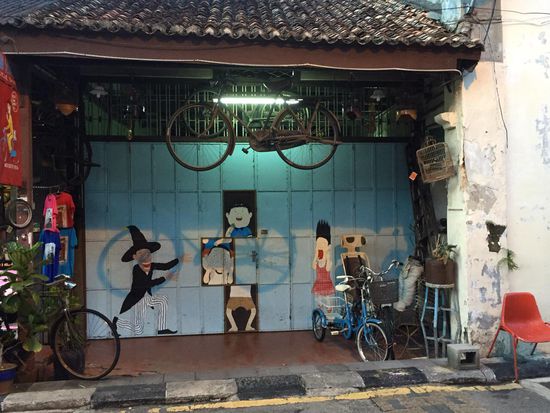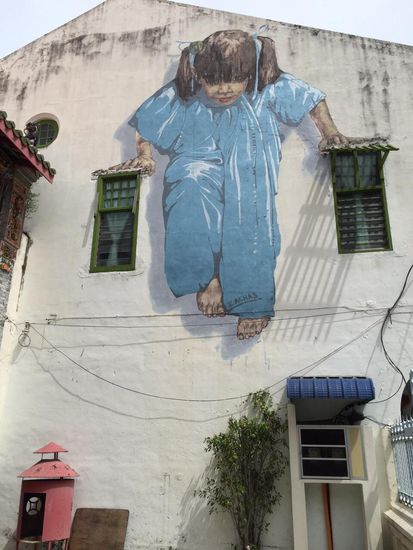 Kurze Zeit später kam aber bereits eine nette kleine Chinesin die mich auf die obere Etage führte wo mich ein wiederum freundlicher Chinese begrüßte, willkommen hieß und mich in rauhen Mengen mit Stadtkarten und Tipps eindeckte. Einchecken könnte ich leider noch nicht, aber nach einer Dusche war ich wieder nahezu lebensfähig und freute mich diese tolle Stadt kennenzulernen. Ein Freund von mir (hallo Samir) hatte Malaysia vor kurzem besucht und seine Bilder der Georgetowner Street Art haben mich mit Abstand am meisten begeistert. Nachdem ich also meine Wäsche zur Laundry gebracht habe (pro zu waschendem Kilo zahlt man hier sage und