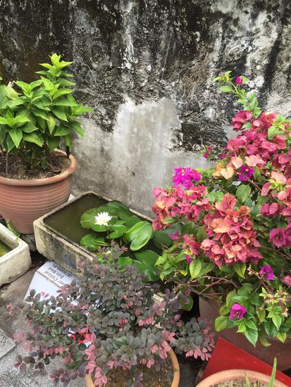 Also ging ich durch die erwachende Stadt: kleine Kaufmannshäuschen reihten sich aneinander, Kolonialbauten dazwischen, moderne oder gebrandete coffeeshops. Blumen wucherten wild durch die Gegend. Es war für asiatische Verhältnisse sauber und ziemlich entspannt. In einigen Chinarestaurants wurde schon das Morgengeschäft vorbereitet: Woks klapperten und Sojasprossen standen eimerweise bereit. Hunde liefen schwanzwedelnd über die Straße.
