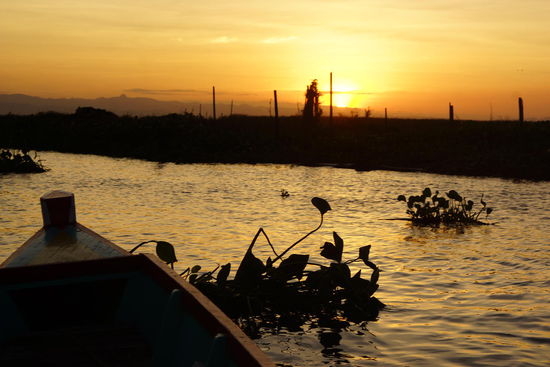 Nachmittag sind wir dann mit dem Boot auf den See zum Sonnenuntergang gefahren. Es war sehr romnamtisch, aber nicht so gross wie in der Nähe von Angkor Wat in Kambodscha.