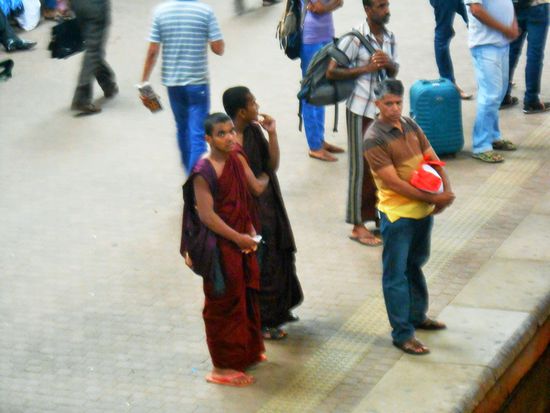 Das Bahnhofspersonal hat tolle Alt-Englische Uniformen an, entweder weiß oder grün. Der Bahnhof hat ebenfalls ein super schönes Flair und man sieht Ladies in weißen super schicken Saris, buddhistische Mönche etc. Eine Wartezeit verkürzt sich erheblich. Sehen uund gesehen werden, ist die Bahnhofs-Devise.