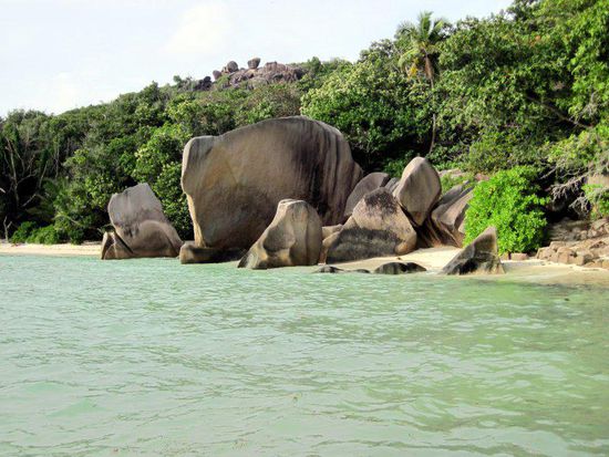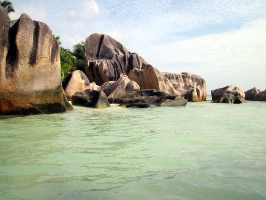 Der schönste Strand von La Digue und wahrscheinlich von den Seychellen überhaupt ist die Anse Source d'Argent. Der Weg dorthin durch die L'Union Estate kostet 100 RS Eintritt. Hier kann man gut einen ganzen Tag (oder mehrere) verbringen mit schwimmen und schnorcheln, beides ist etwas tidenabhängig. Die interessanten Stellen sind etwas weiter draußen, aber noch vor dem Riff. Die Vielfalt an Fischen und Korallen ist beeindruckend. Auch eine Meeresschildkröte ließ sich blicken.