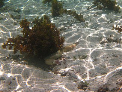So fahre ich bald weiter zur Anse Forbans. Hier ist zwar leider gerade Ebbe und das Wasser zum Schnorcheln etwas flach. Es lässt sich aber doch eine kleine Muräne blicken.