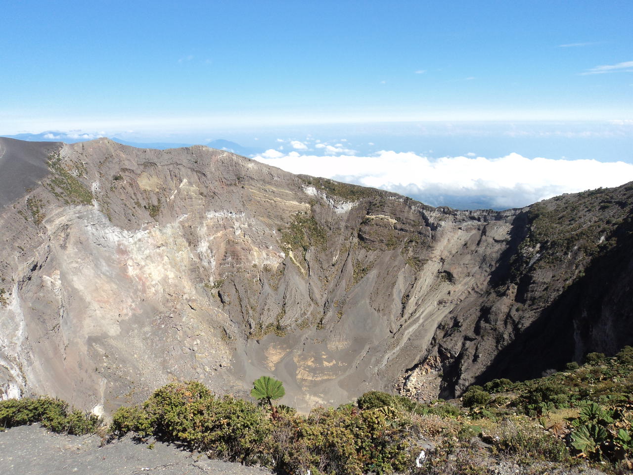 Der Krater vom Vulkan Irazú. Wenn es regnet füllt er sich mit Wasser und reflektiert dann den Himmel, sodass das Wasser schön blau leuchtet.