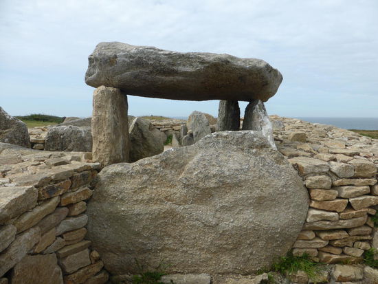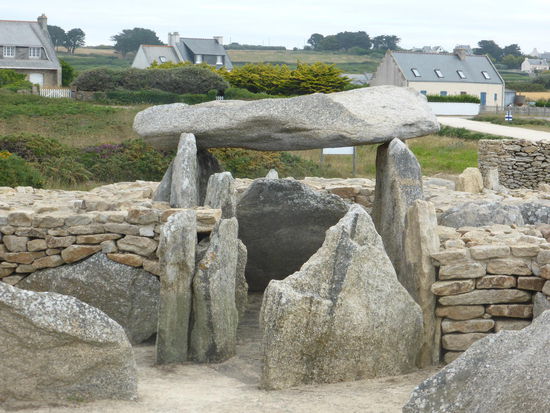 Nach Pors-Poulhan ist es nicht weit, direkt hinter der Bucht steigt die Straße an und man erkennt ein Areal – offensichtlich recht neu gestaltet – mit prähistorischem (rekonstruiertem) Langgrab. Dort ist das Centre d'interprétation de Menez Dregan untergebracht, das (natürlich) erst am 1.7. wieder öffnet.