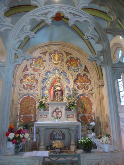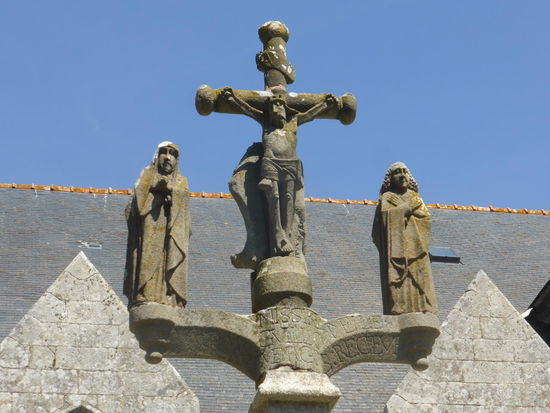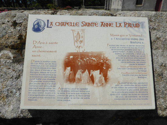 Fast wieder an der südlichen Küste liegt der kleine Ort Sainte Anne la Palud, der wegen seiner Kirche gerne besucht wird. Vor lauter Begeisterung über die Skulpturen am Calvaire und den Triumphbogen habe ich völlig verschwitzt eine Totalaufnahme der Kapelle Sainte Anne la Palud zu machen. Auf Nachfrage darf ich das Foto aus obiger Seite auch hier einstellen.