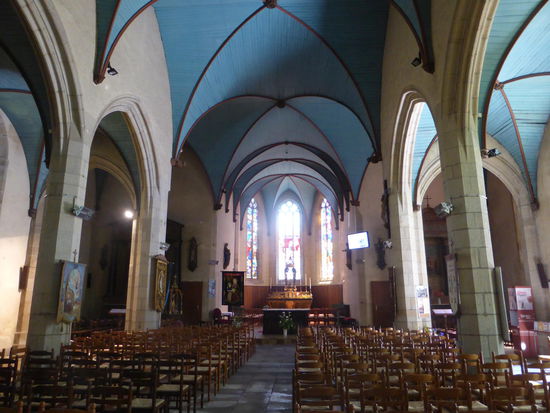 Auch das Innere gefällt wegen seiner Schichtheit - wie in der Bretagne häufig beobachtet, sind die Gewölbe mit Holz abgehangen - manchmal verdeckt das Holz sogar Teile der steinernen Dekoration.