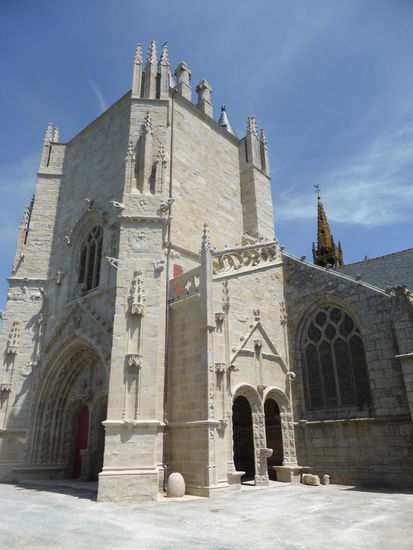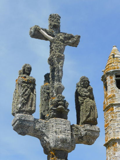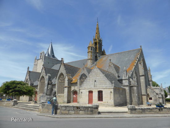 Die Kirche in Penmarch ist wieder mal geschlossen , der massive Turm wohl frisch restauriert, während sich der restliche Bau mit starkem Moosbewuchs abfinden muß.