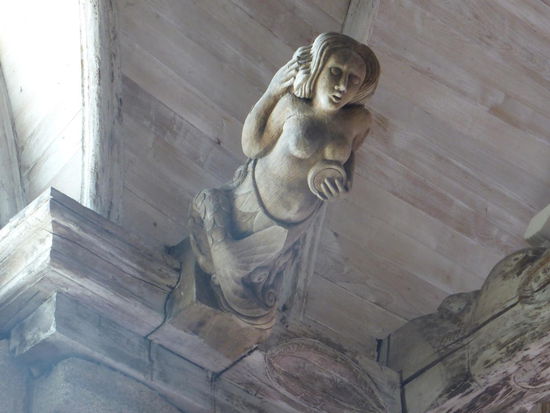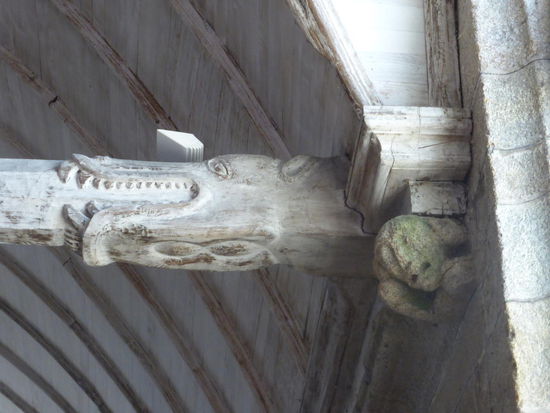 Besonders interessant sind hier die Innendetails. Die Balken sind an ihren Ende als Krokodilköpfe ausgearbeitet. Außerdem gibt es eine hölzerne nackte Frau in der Kirche! (Mit Spiegel und Kamm).