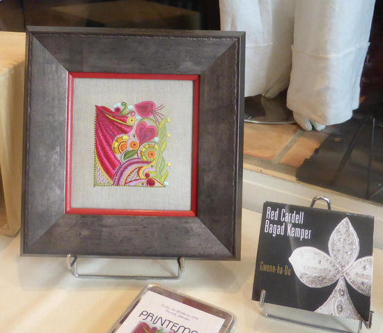 Auf dem Rückweg betreten wir - wieder in Lokmaria - kurz die Stickerei-Schule, aber da sie für die Ausstellung 5€ haben wollen, verzichtet meine Frau Ulrike. Dafür gibt es dann in der Biscuiterie einen Schluck Cidre und ein Minipröbchen der Biskuits.