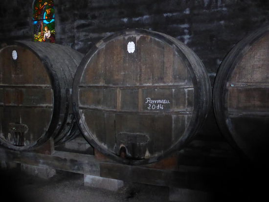Auf meinem Programm steht dann noch die Cidrerie Manoir de Kinkiz – dazu müssen wir dann doch noch 6 km fahren. Dort ist nichts los, und es sieht schon geschlossen aus; schließlich kommt der Chef doch noch herausgehumpelt und läßt uns sichtlich erfreut diverse Sachen probieren: 3 verschieden Cidre, Pommeau, einen Aquavit – mit Apfelsaft verlängert als Aperitif, und zwei verschiedene Calvados. Entsprechend wird die Rechnung. Im Keller zeigt er uns die Fässer und schließlich holt er mit einem Stechheber aus einem besonderen Faß von 1983 einen Schluck ganz alten Calvados. Drei verschiedene Karten funktionieren nicht – daher müssen wir nebenan zu seiner Frau ins Museum – dort klappt es dann auf Anhieb mit dem Bezahlen. Auf dem Rückweg müssen wir uns mal wieder an einem der zahlreichen Kreisverkehre 800 m vorwärtsquälen, schaffen aber ansonsten zügig den Heimweg.