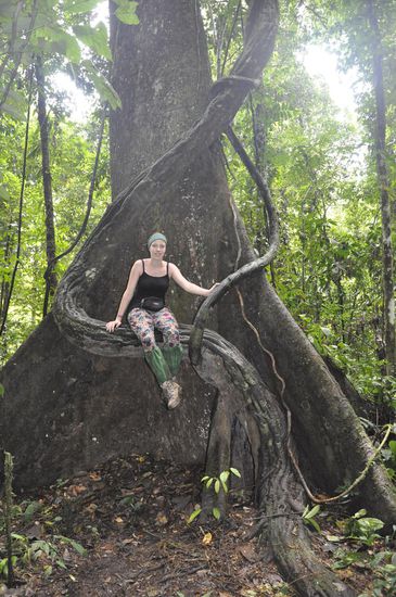 Es hat in der Nacht wieder doll geregnet und der unebene Weg im Urwald ist teilweise wie eine Rutschbahn.