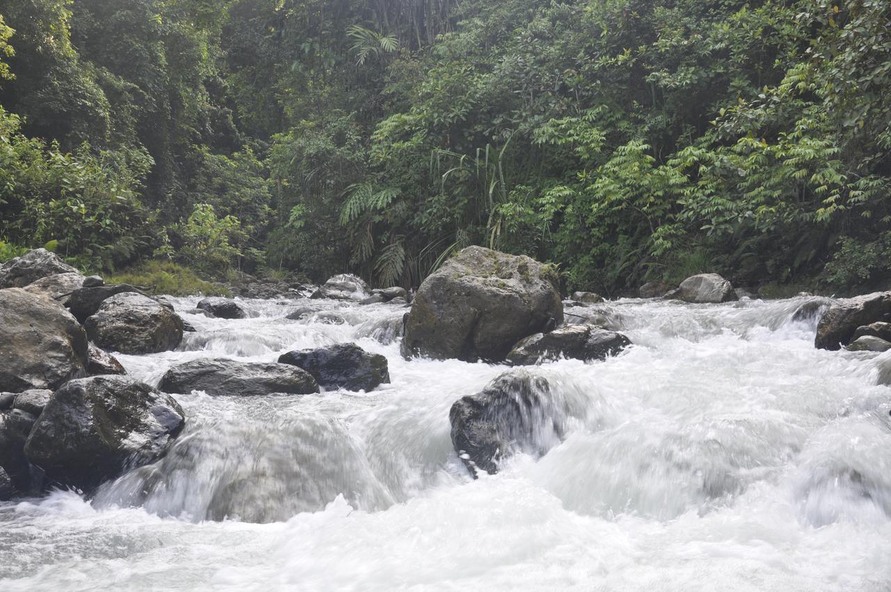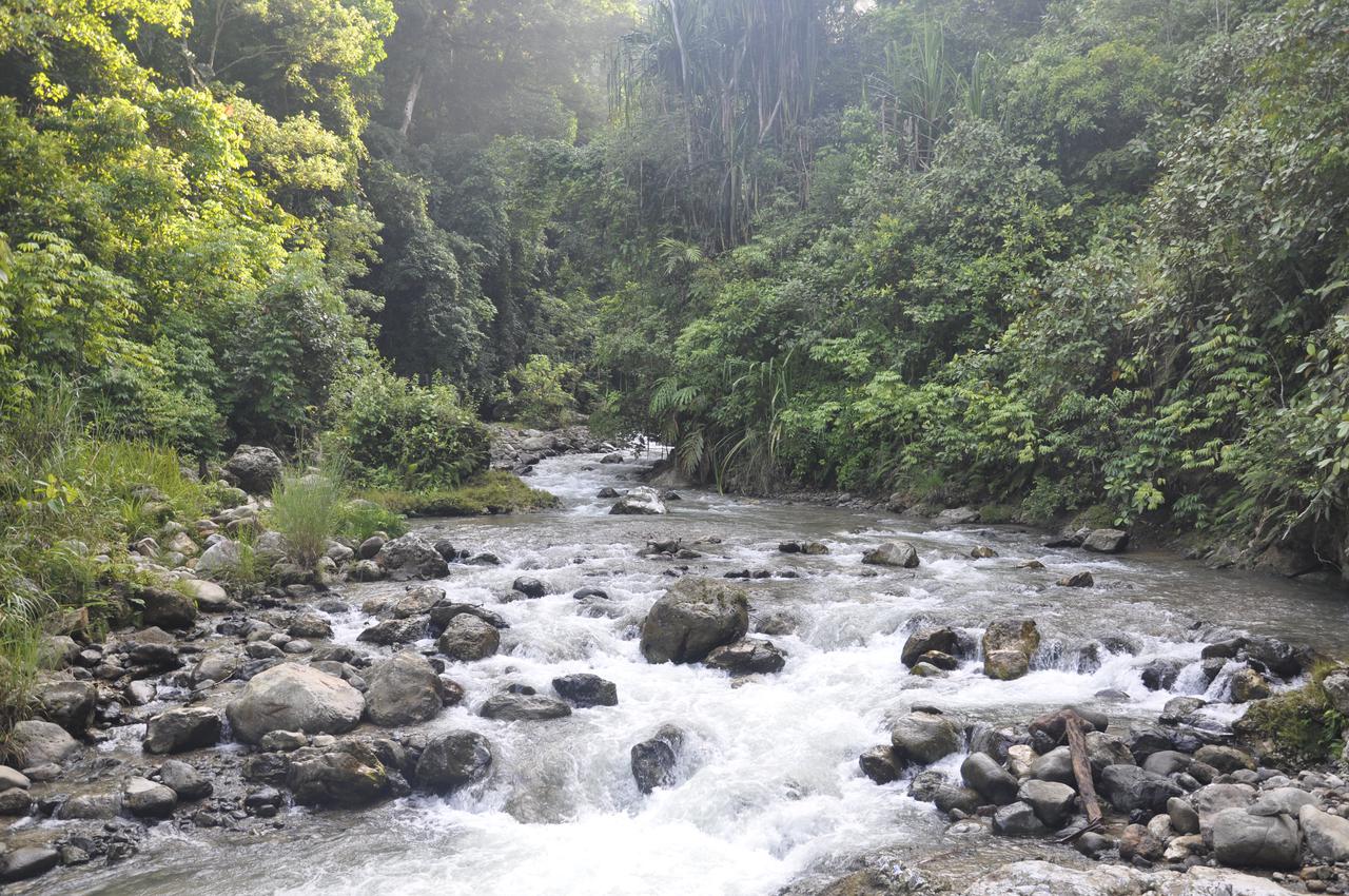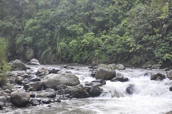 Beim Frühstück kann man hier von der Veranda des Restaurants einen herrlichen Blick auf die bewölkten Berge und den Dschungel genießen. Dabei durch das Fliegengitterfenster den Jungs beim kochen zuschauen.
