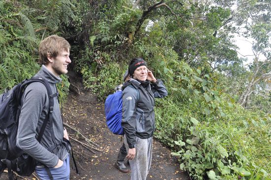 Um 10 Uhr sind die anderen zurück. Sie berichten,dass es wegen es schlechten Wetters keine sehr gute Sicht war und sie konnten auch nicht in den Krater schauen.