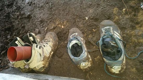 Um 15 Uhr sind wir dann tatsächlich unten, von Kopf bis Fuß mit Schlamm besudelt, putzen grob unsere Schuhe und setzen uns in den mit Plastikplanen ausgelegen Bus.