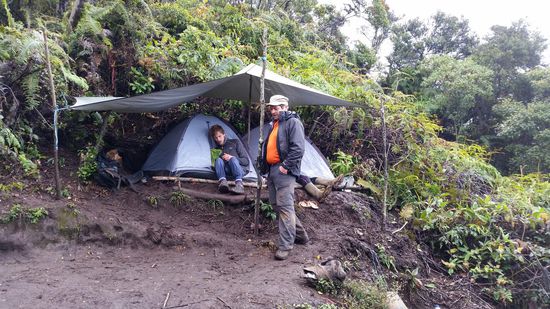 Im Camp angekommen, wird Thalia mit allen Schlafsäcken , Paracetamol und einer Wärmflasche versorgt und wir schicken die Jungs wieder den Berg rauf.