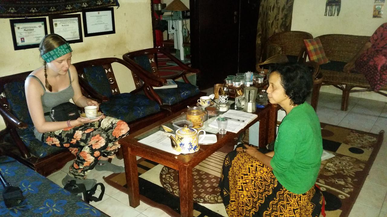 Der Besitzer wird von dem Jungen aus dem Bett geklingelt und Thalia und ich dürfen im "Prayer-Room "(Gebetsraum) auf unseren Bus warten. Der soll um 9 Uhr fahren.